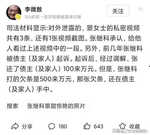 话说那天,张继科事件视频突然在网上流传开来。视频中,张继科与一位神秘女子举止亲密,画面尺度之大,让人瞠目结舌。一时间,网友们纷纷转发,吃瓜群众们纷纷围观,场面可谓是热闹非凡。